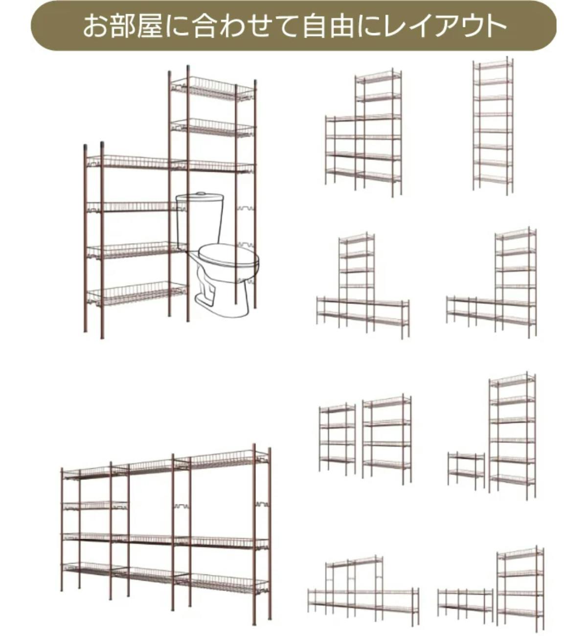 洗濯機ならその上を洗剤置きに、トイレならタンクの上に予備のトイレットペーパーや消臭剤を収納できます。