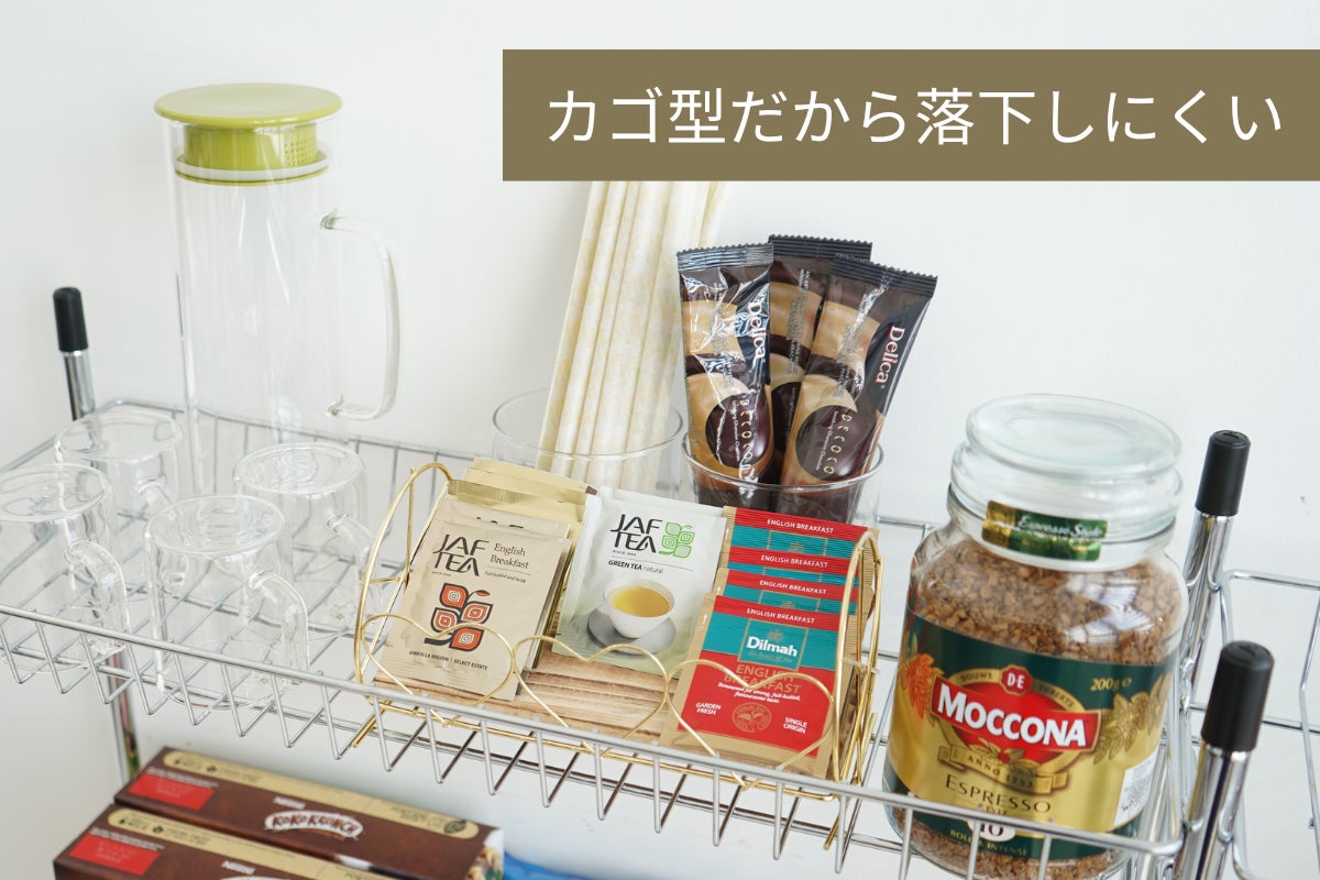 2.カゴ型ラックだから荷物が落ちにくい。1段当たりの耐荷重量が約6.5kg。