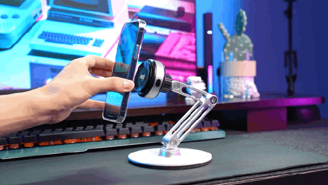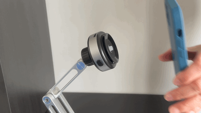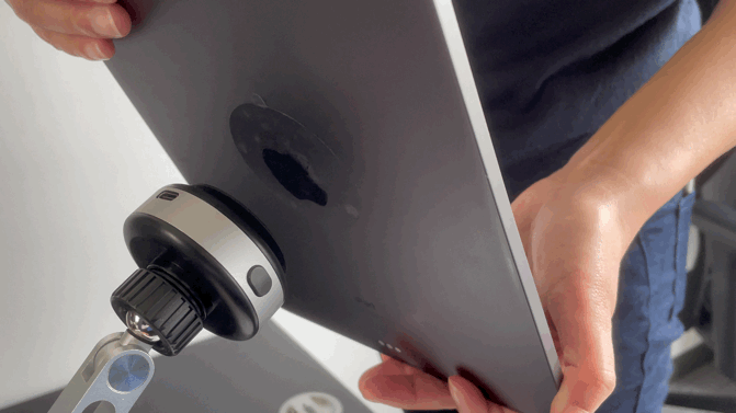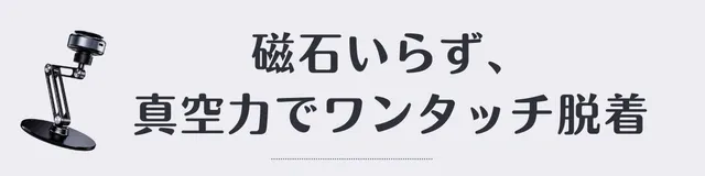 V360は真空の吸着力でスマホを脱着するスタンドです。モーターの力によりたった1秒で吸盤の中が真空状態に!