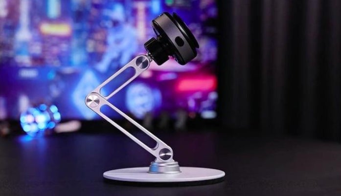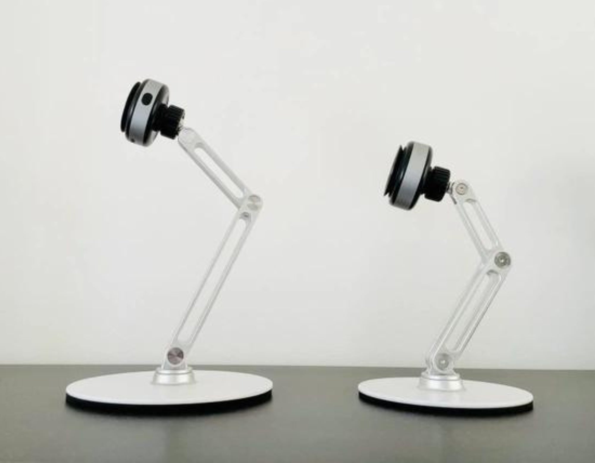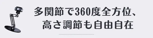 V360は雲台、ネック、ニー、アーム、台座の5か所の関節が動く多関節設計で、角度や高さを自由に調整できます。