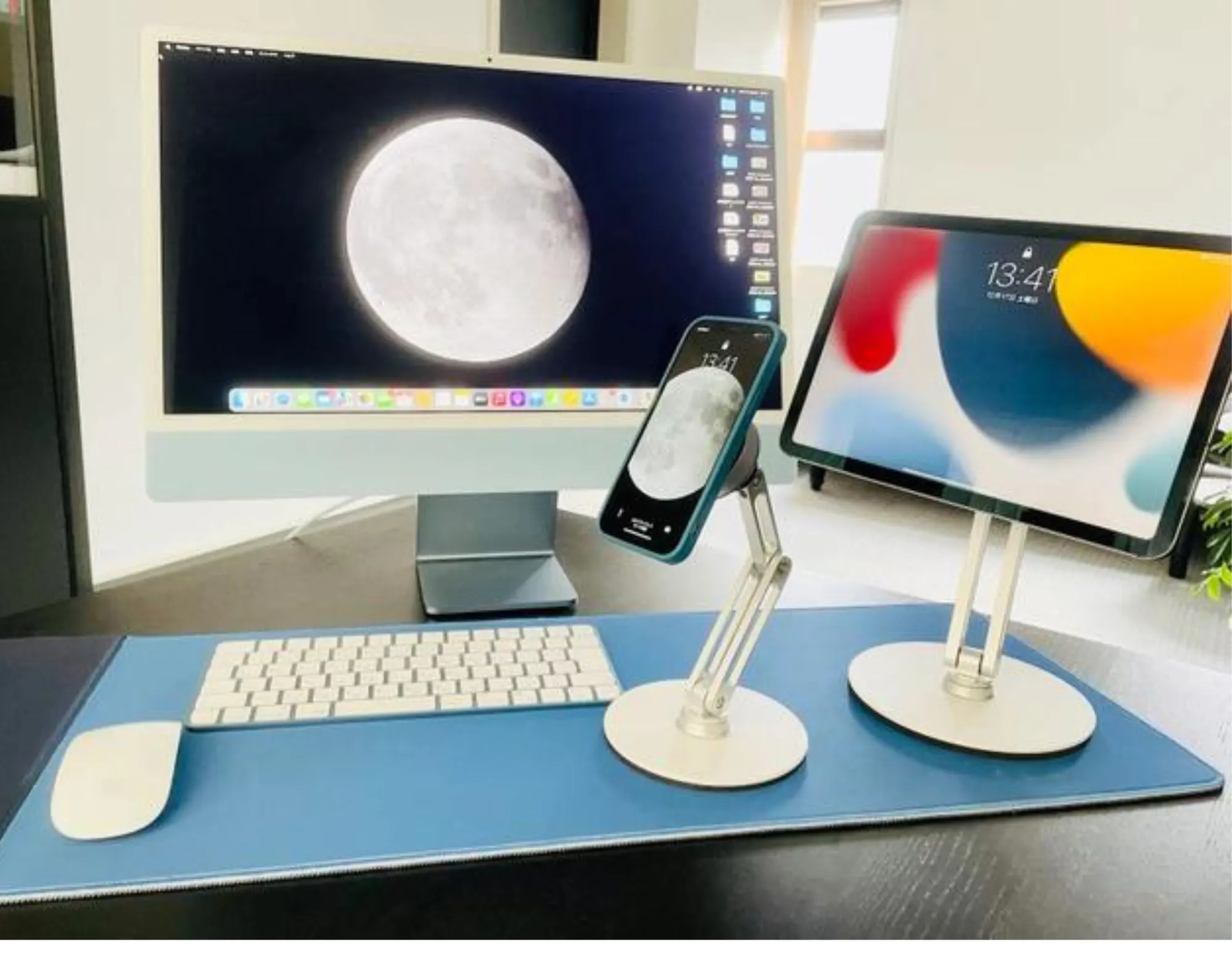 機種限定のスタンドも多くありますが、そうするとタブレットを買うたびにスタンドもどんどん増えていってしまいますので、デスク周りがごちゃつきやすいです。
