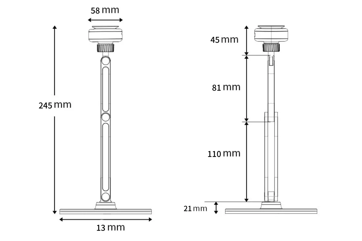 ※スマホ用C01(Mサイズ)のボール下の関節は可動式ですが、タブレット用C02(Lサイズ)のボール下の関節は可動式でははく、固定する仕様を採用させていただきました。