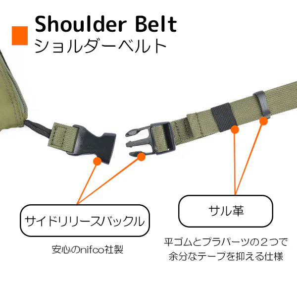 ショルダーベルトの作りを工夫し、長さ調整出来る範囲を広くしました。