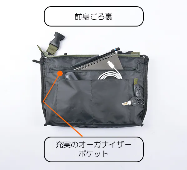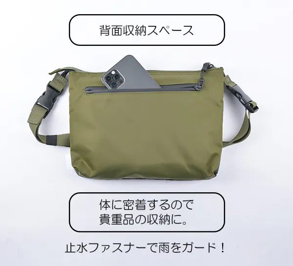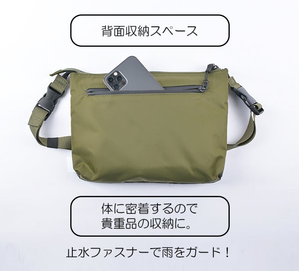 タウンユースだけでなく、キャンプや音楽フェスなどアウトドアシーンで貴重品だけ身に着けたい時にも活躍します。