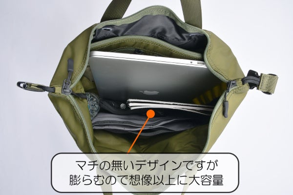 マチが無くても荷物に合わせて膨らむように出来ています。