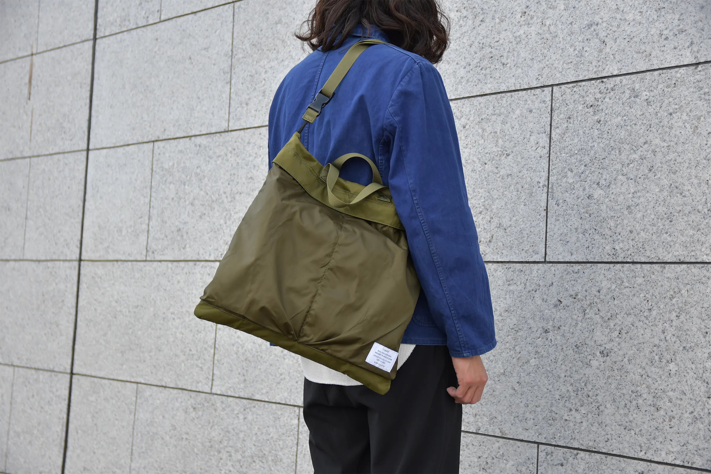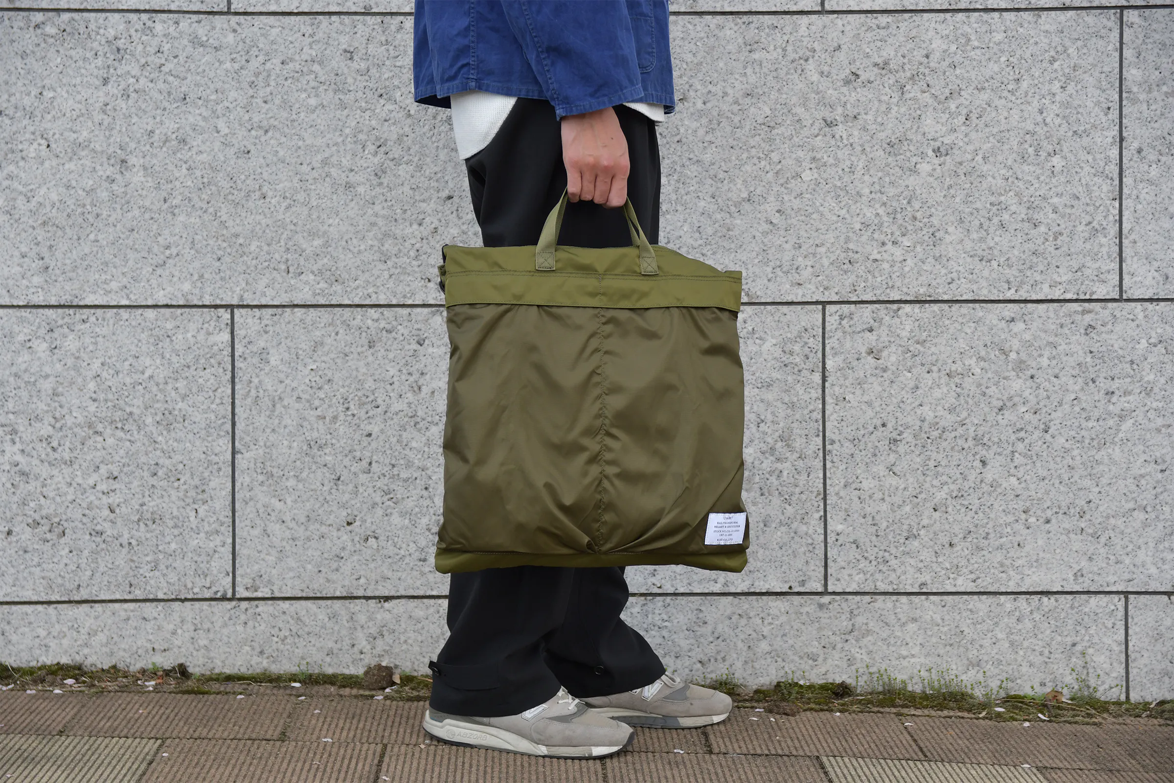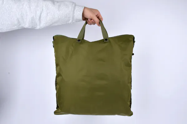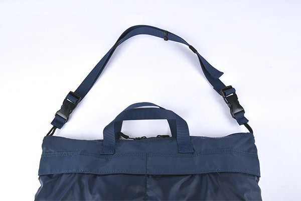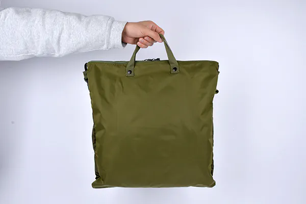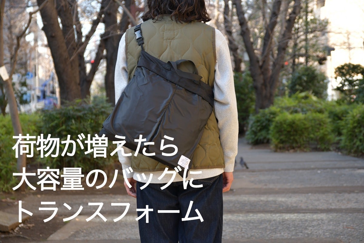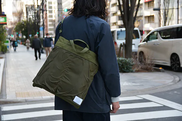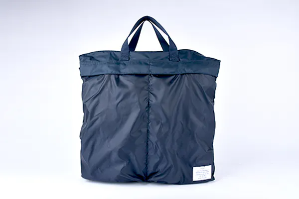 小さく畳める事が魅力のパッカブル式バッグに、どうすれば日常使いしたいと思えるクオリティを持たせられるか考え辿りついたのが「トランスフォームヘルメットバッグ」です。