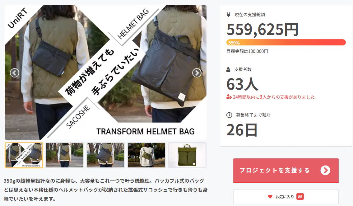 現在プロジェクト実施中のトランスフォームヘルメットバッグや、別のプラットフォームでクラウドファンディングに挑戦中の商品を試して頂けますので、お近くの方はぜひいらして下さい。