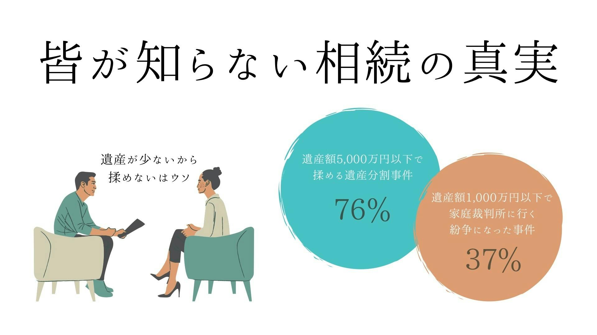 私は20代という事もあり自分の人生の中で相続に関わることがなかったため、映画やドラマの中でのイメージから"相続で揉めるのはお金持ちの人"とばかり思っていました。財産が少ないのに、人間の感情が交じり合って大切な家族と大きな相続争いが起きるなんて考えたこともありませんでした。