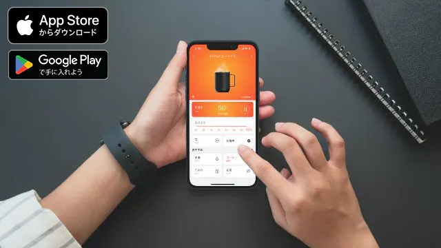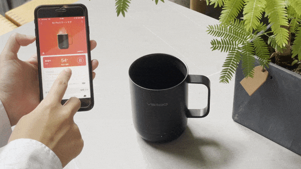 ✓VSITOOアプリをインストールすれば、スマートフォンから操作可能。アプリの温度軸をスライドするだけで、スマートマグと同期してお好みの温度に調整可能。