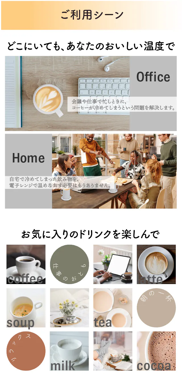 充電コースターを利用すれば、一日中適温を保つこともできます。