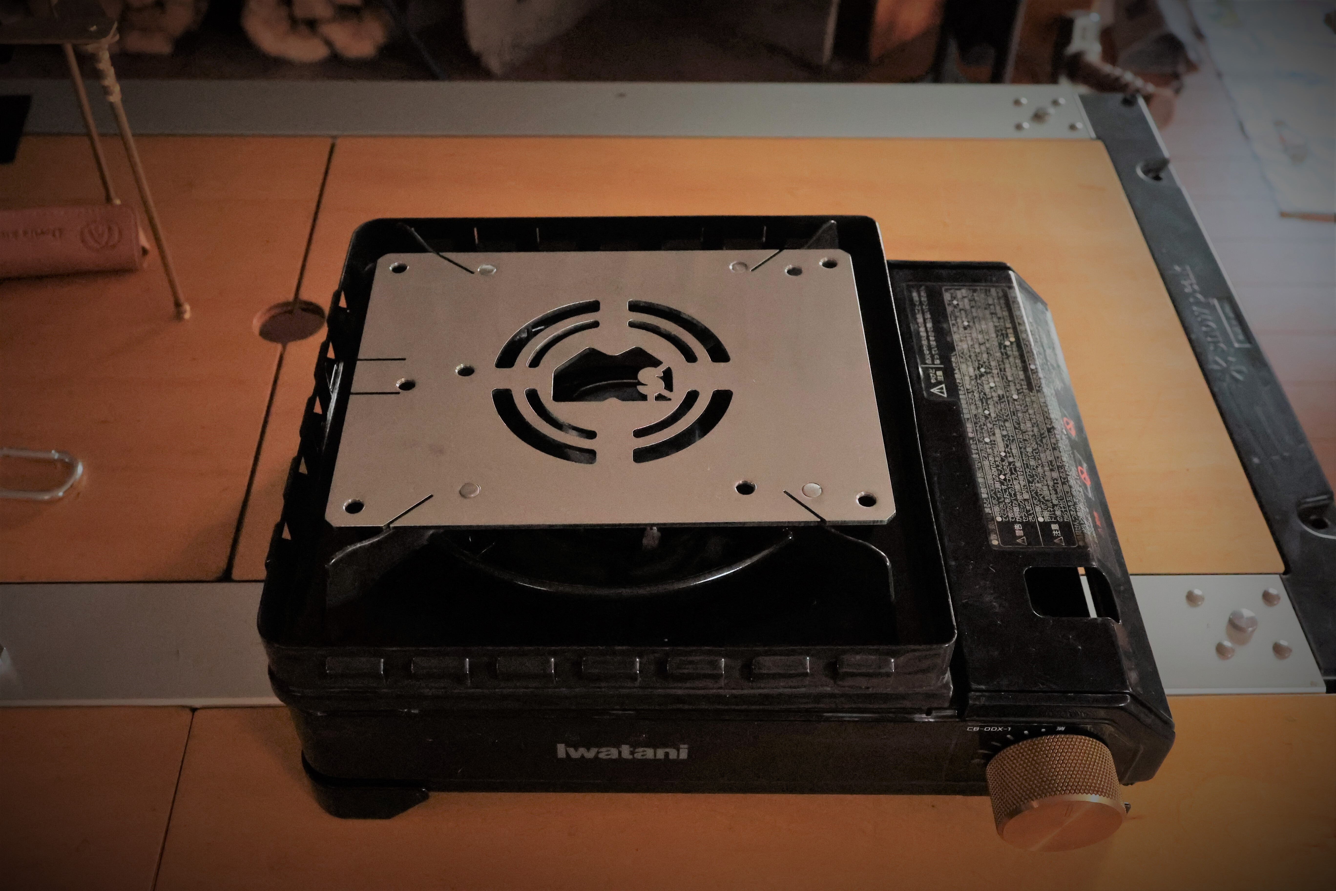 I社のカセットコンロに合う鉄で製作したMSMF五徳