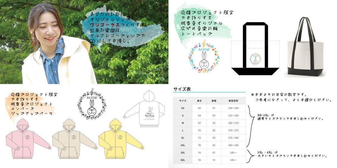 バックプリントは、プロジェクトのための明香音描き下ろしデザインを予定しています。