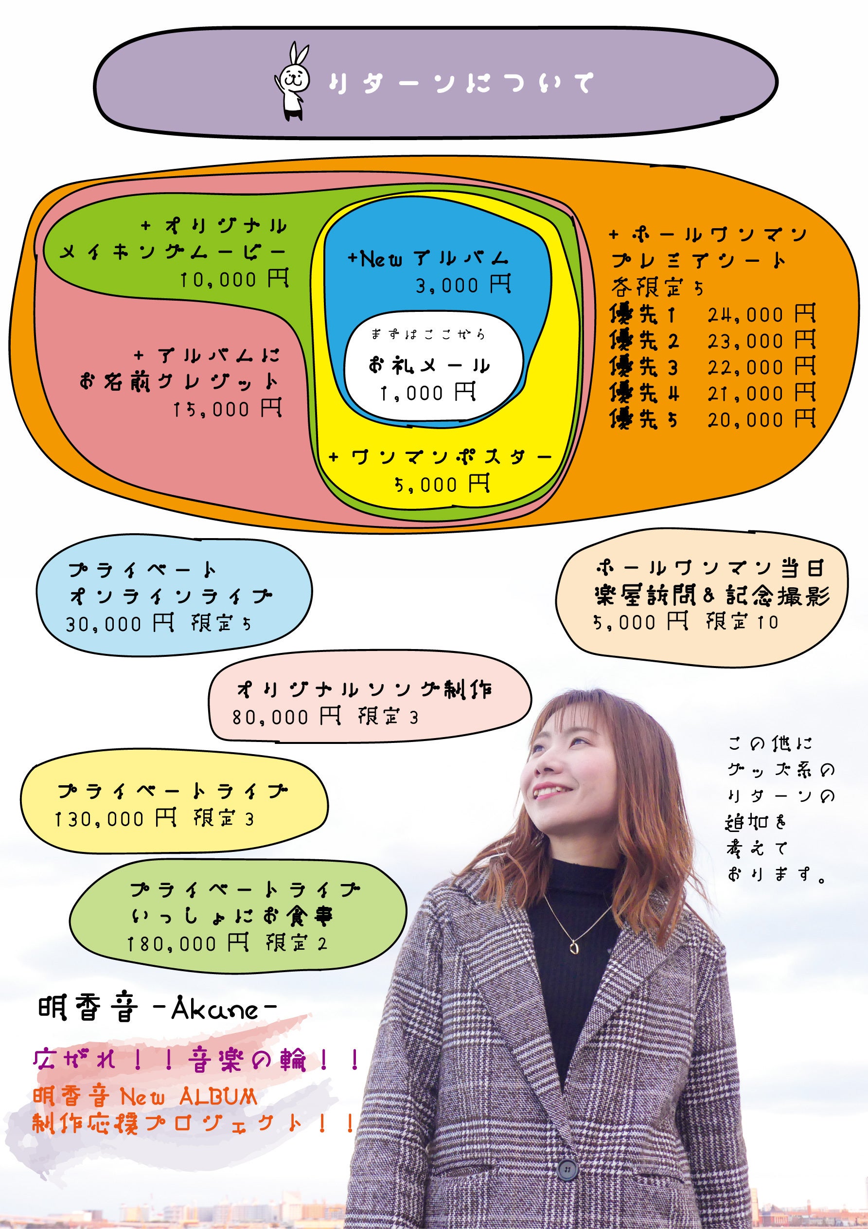 そのため、今回はアルバム制作に向けてクラウドファンディングに挑戦させていただくことにいたしました。
