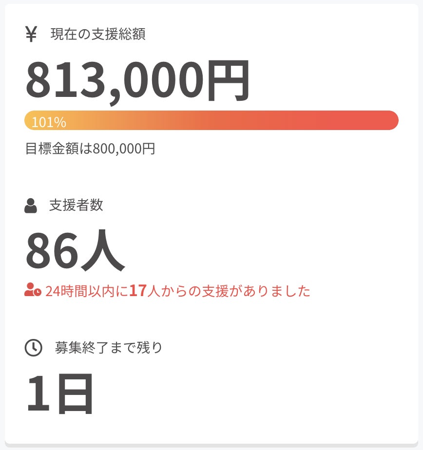 ここまでたくさんのご支援をいただき、本当にありがとうございます。