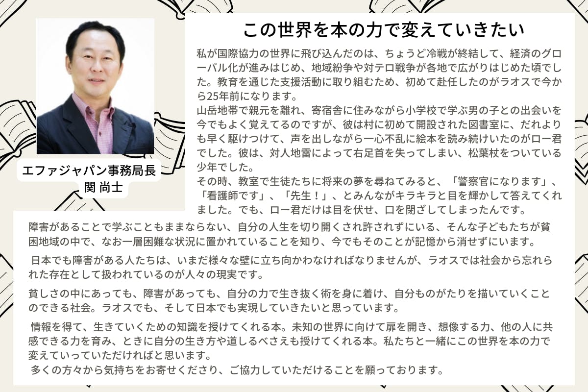 みなさんこんにちは。エファジャパンの事務局長の関です。3月1日から1か月間、2度目の挑戦となるクラウドファンディングに挑戦いたします。