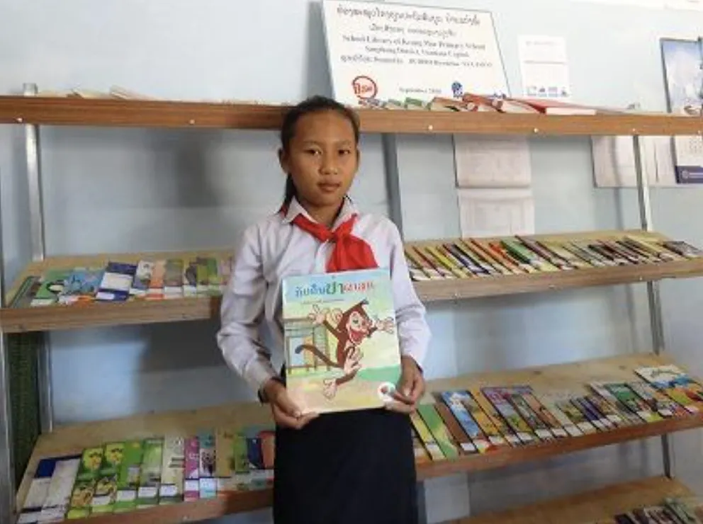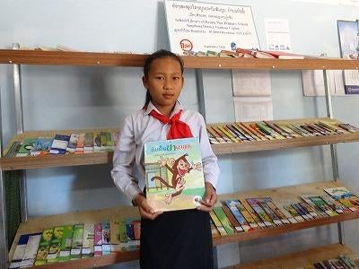 ケンモー村小学校に図書室をつくり、本を届けてくれた自治労広島県本部の皆さま、本当にありがとうございます。私は物語の本が好きです。また、漫画と絵本も大好きです。図書室に来て、授業に関係している本も読みます。新しいことを知ることができます。図書室は私だけではなく、すべての人にとって必要な場所だと思います。これからも毎日図書室に通って、本を読みます。Kobchai!(ありがとうございました)