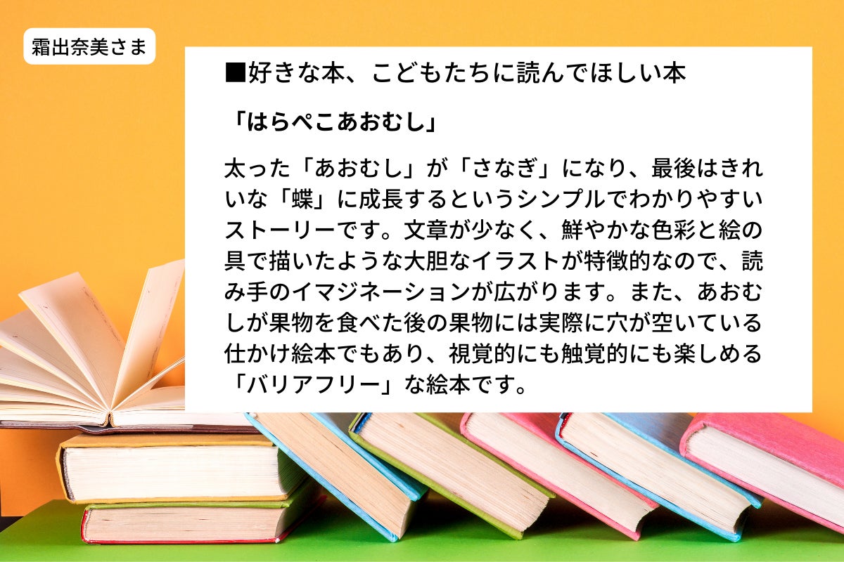 エファが本を届ける活動をしていることに因み、子どもたちに読んでほしい本もお伺いしました。ぜひご覧ください。