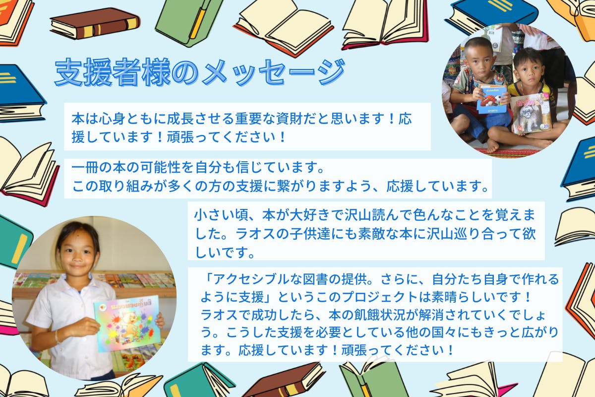 ◆小さい頃、本が大好きで沢山読んで色んなことを覚えました。ラオスの子供達にも素敵な本に沢山巡り合って欲しいです。