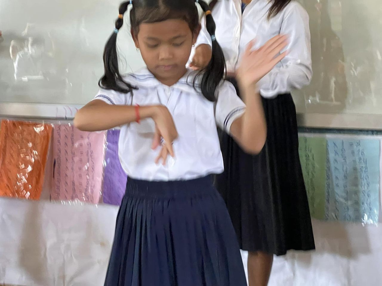 子どもたちがクメールの踊りと歌を披露してくれました。クラブが始まった2年前は「誰も声を発しない」と先生方から言われていたのですが、このように表現ができるようになった姿を見てなんか泣けてきました。