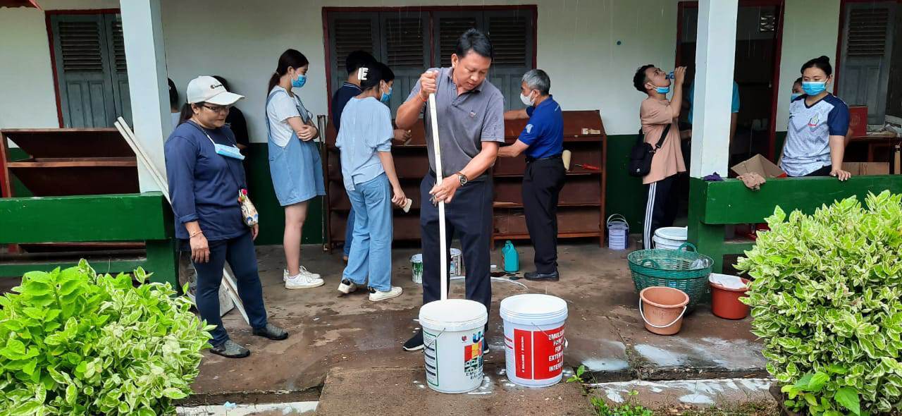 ラオスの小学校はいま夏休みです。9月1日の新学期に間に合わせるように作業を進めます。