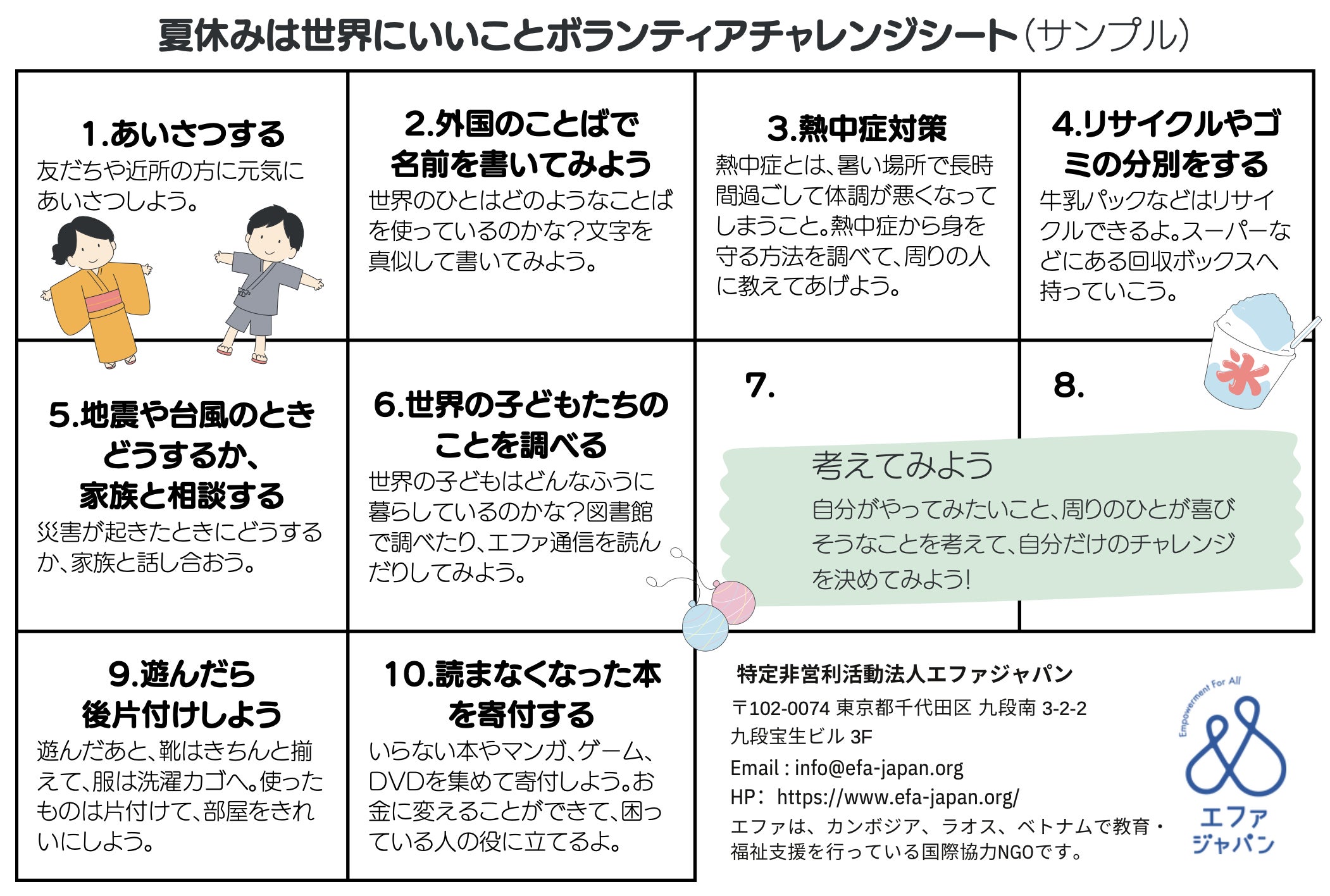 子どもたちが取り組めるエファのボランティアプログラム、まだまだ参加者募集中です。