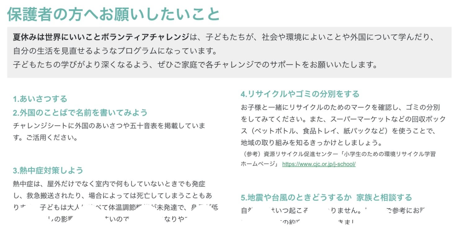 ・チャレンジの手引き(保護者の皆さま向けのご案内)