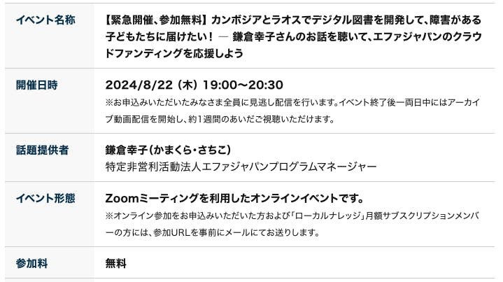 この度、エファの取り組みを応援してくださっている本棚演算株式会社さんが、クラウドファンディングの応援のためにイベントを開催してくださることになりました。