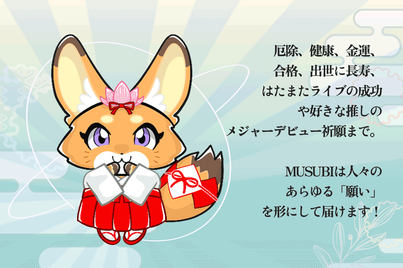 A. 神社やお寺で作ったものではないため、自分の推しの対象または自分への想いをダイレクトに願うことができます。世の中には非現実的な力に頼るしかないケースもありますが、自分の努力で救われることも多々あるかと思います。MUSUBIは自分の努力で自分自身、または他の誰かを手助けする仕組みを持っており、同じ願いを持つ誰かを応援するといったアクションをとることで、人と繋がることが出来ます。