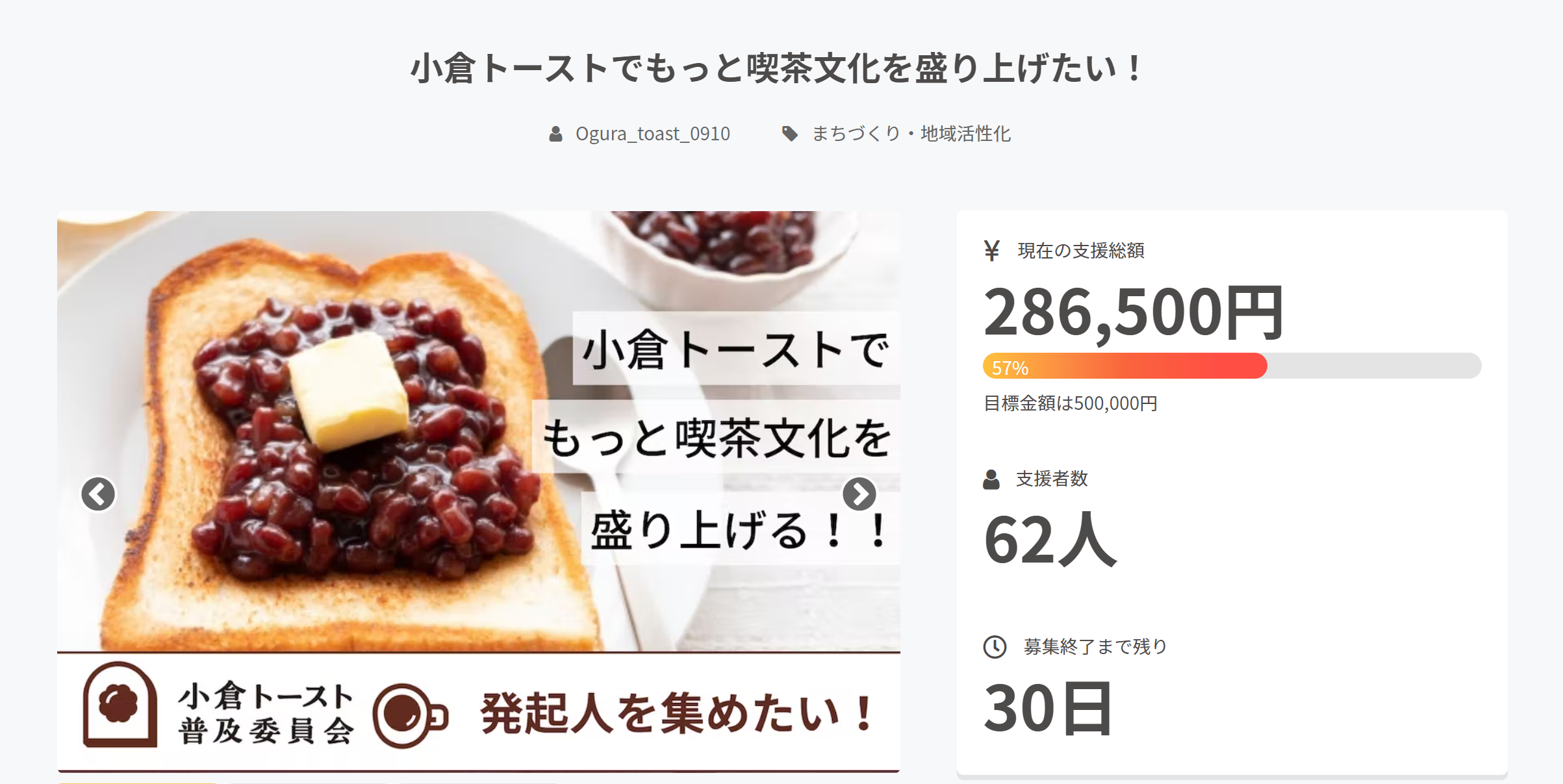 【小倉トースト普及委員会の発起人を100人集めたい】