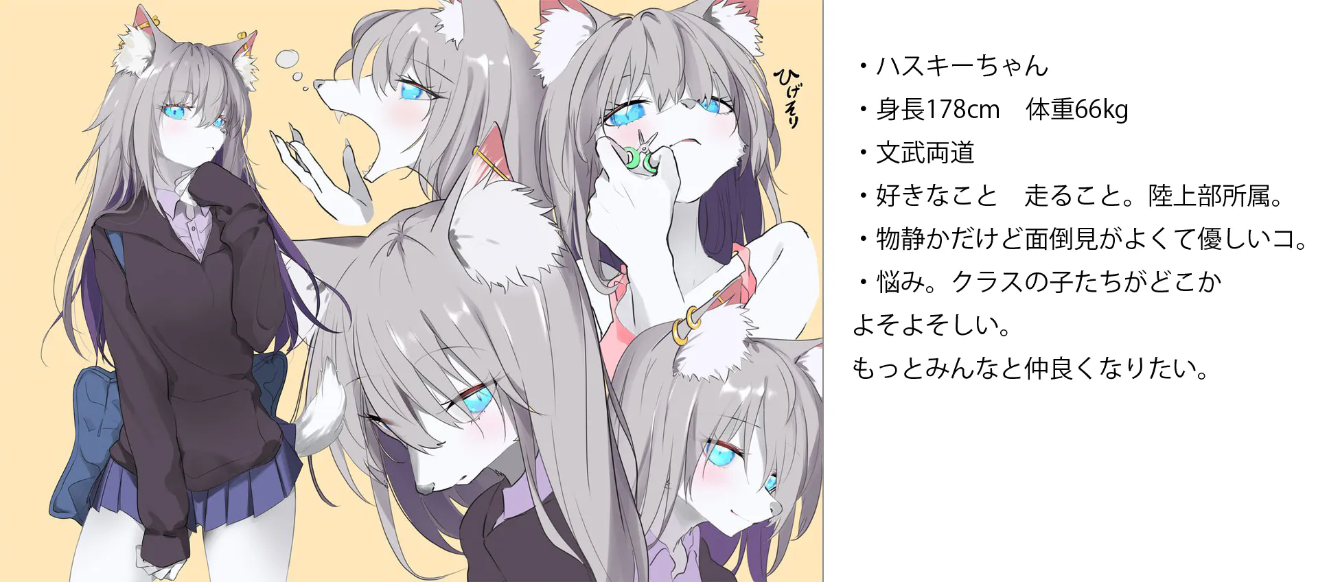 上記のオリジナルキャラクター シベリアンハスキーをモデルにデザインした「ハスキーちゃん」を中心に制作する予定です !