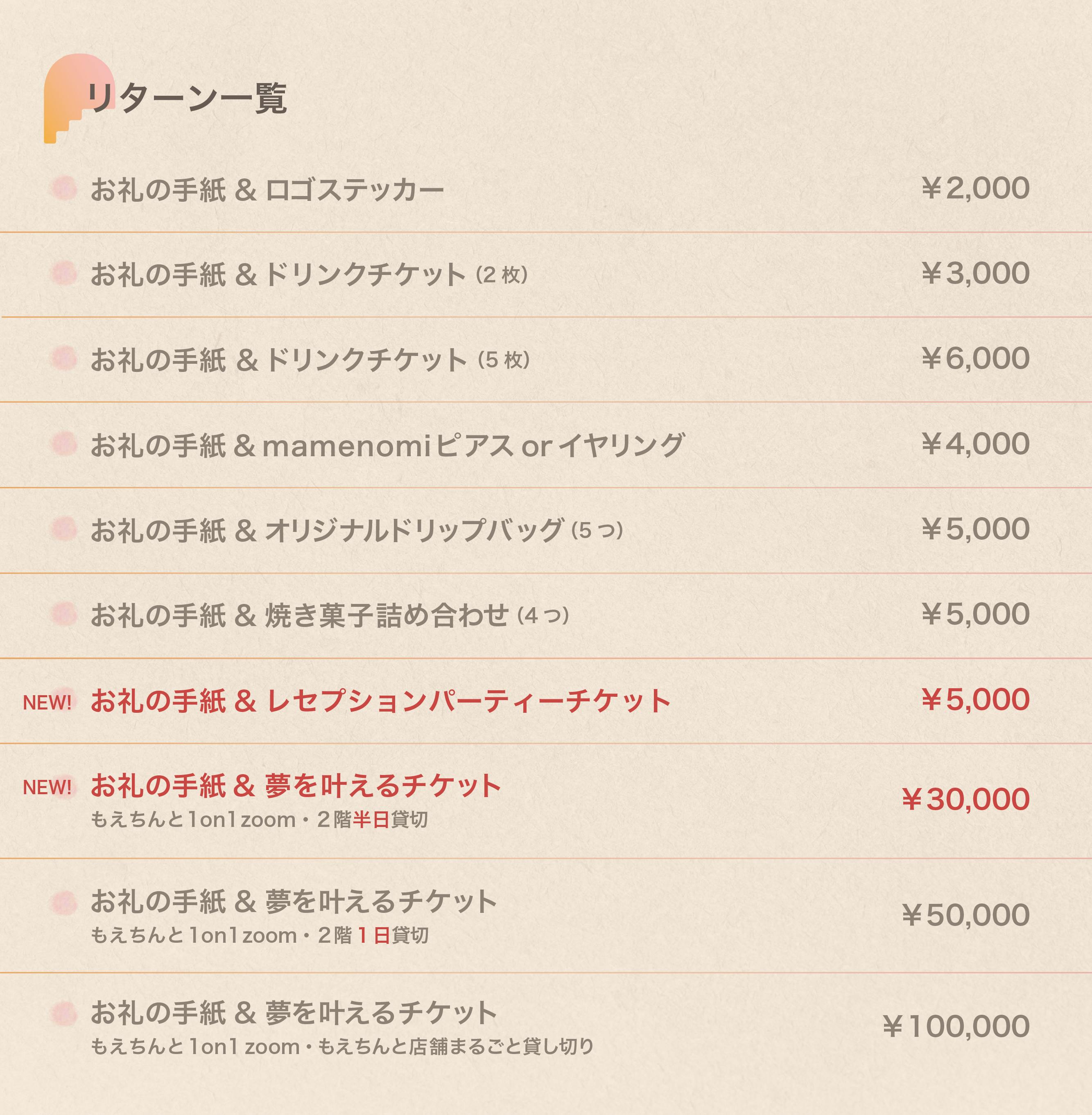 また、店舗2階を半日利用して夢を叶えるチケットも追加しております。