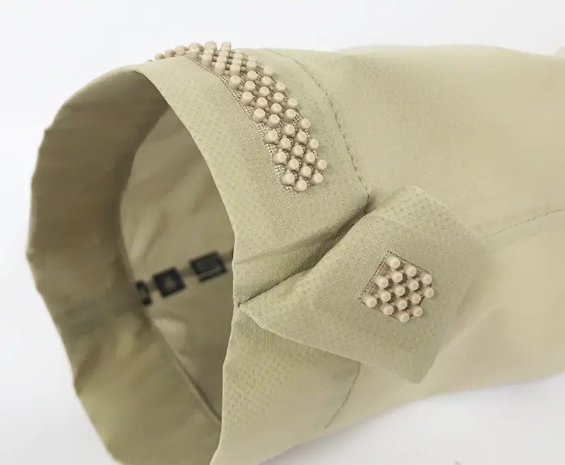 本日はハイスペック軽量コートの袖口に採用した、弊社特許資材である「ブロックテーピー」のご紹介です!