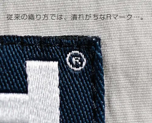 多くの織りネームでは特に曲線や小さなロゴは表現が難しく、下の画像で分かるようにRマークなどは潰れがちです。