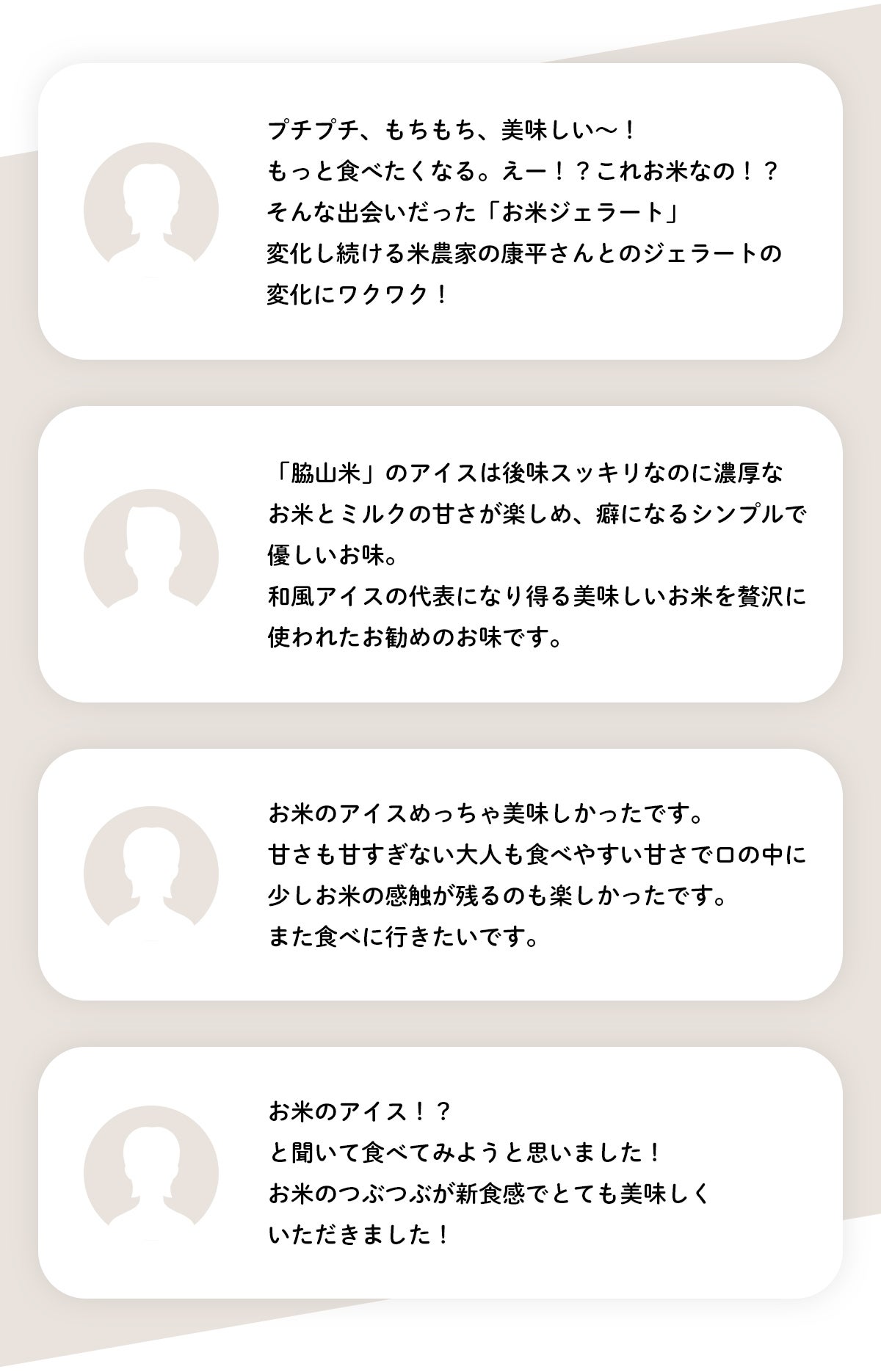 脇山米ジェラートを食べていただくと「もちもち」「プチプチ」とした食感を楽しんでいただけます。