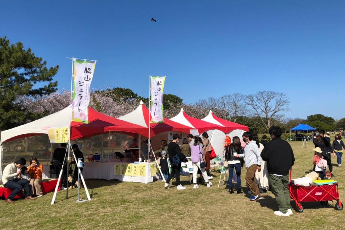 緩和された時期、夏場の農業が閑散期を迎える時期に、移動販売の許可を得て、福岡市内の直売所前やマルシェ等へ参加し、「脇山米ジェラート」を知っていただく機会を設けてきました。