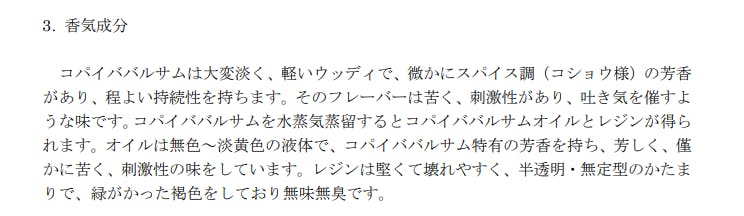 僕は「コパイバオイル」というものの存在を知らなかったのですが、