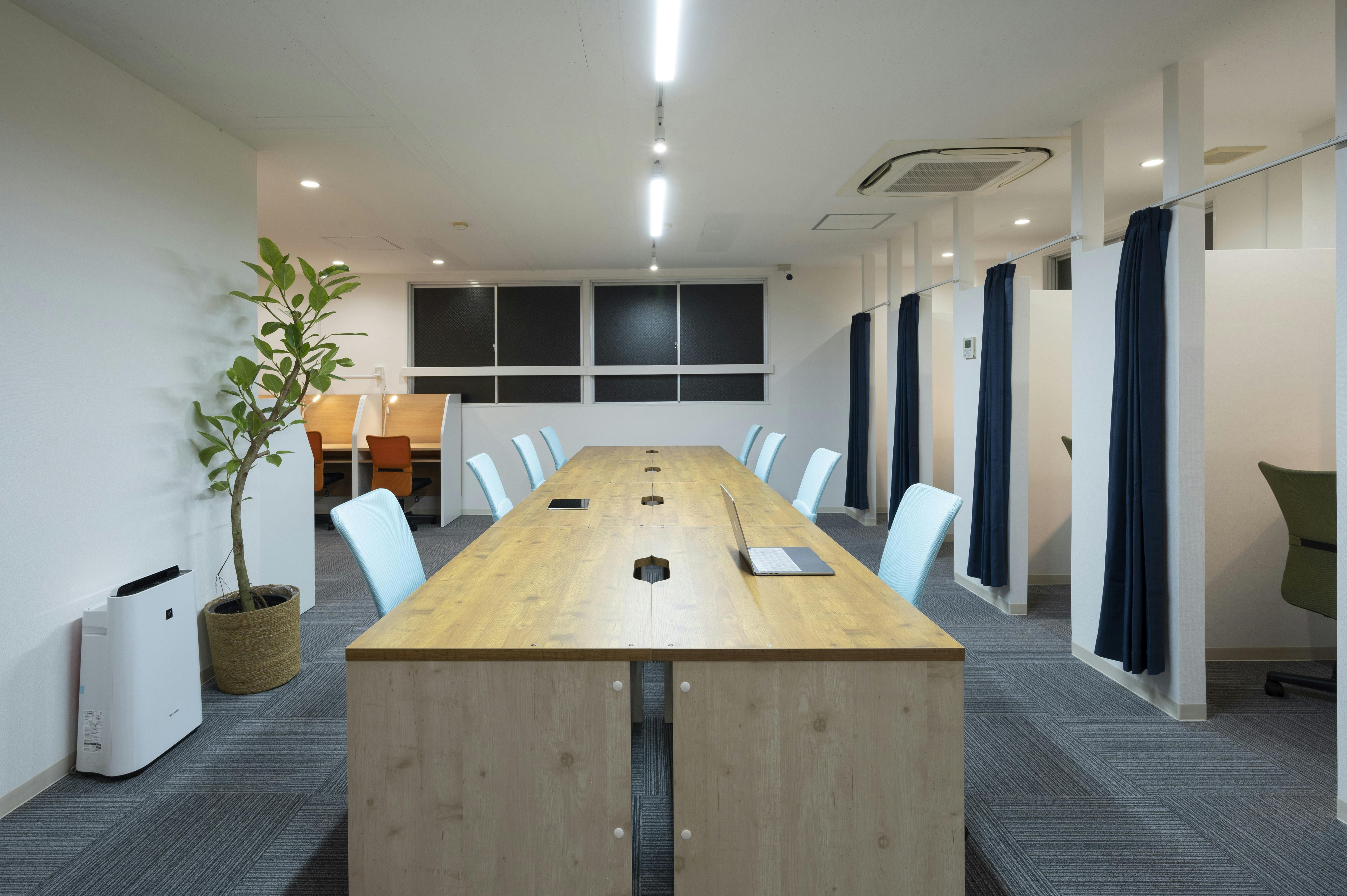 ・テレワークブース(1席)を設け、リモート会議に適した環境も作ります。