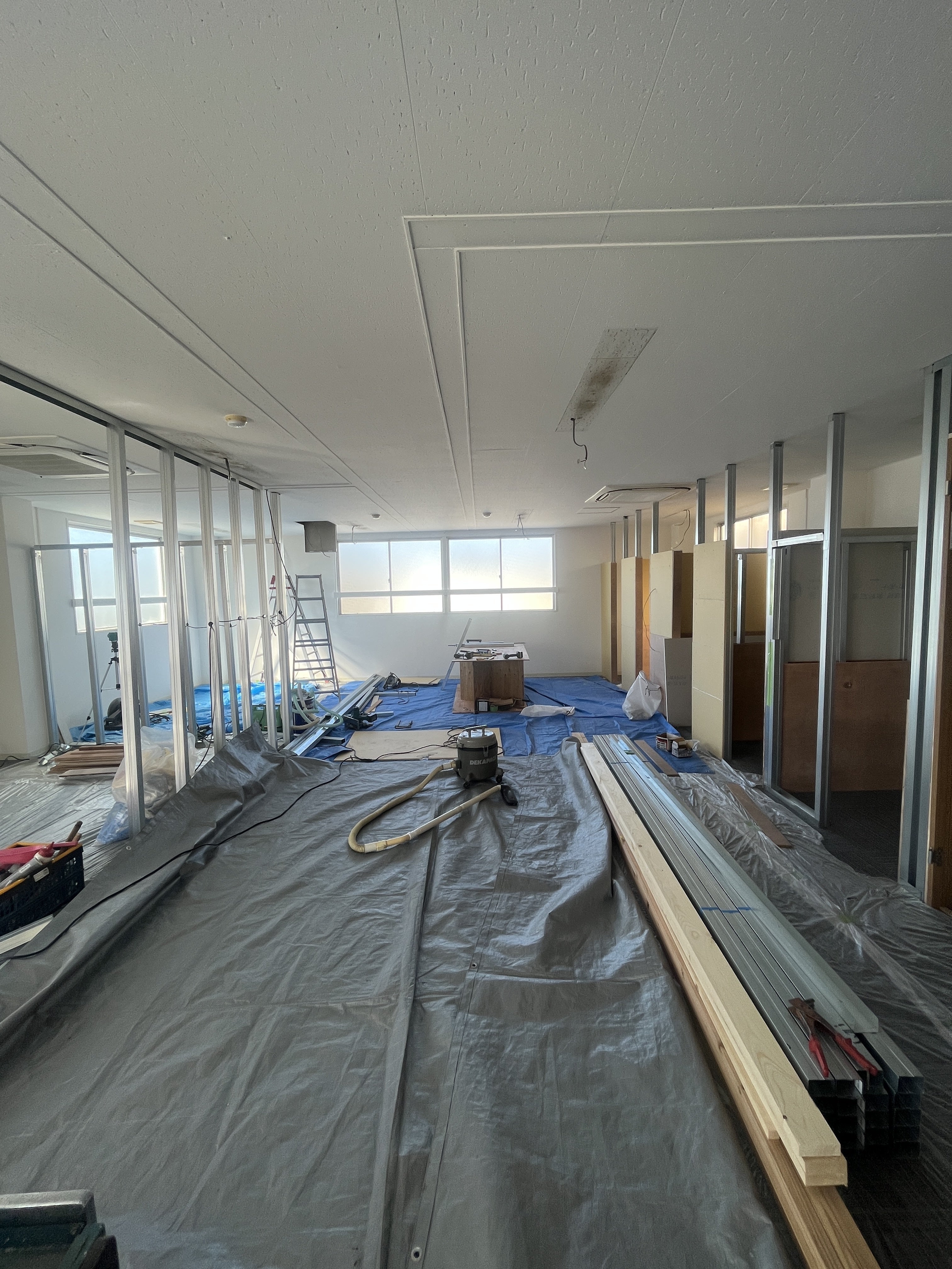 (工事も良い感じで進んでます。左がミーティングルーム右がシェアオフィスの個室)