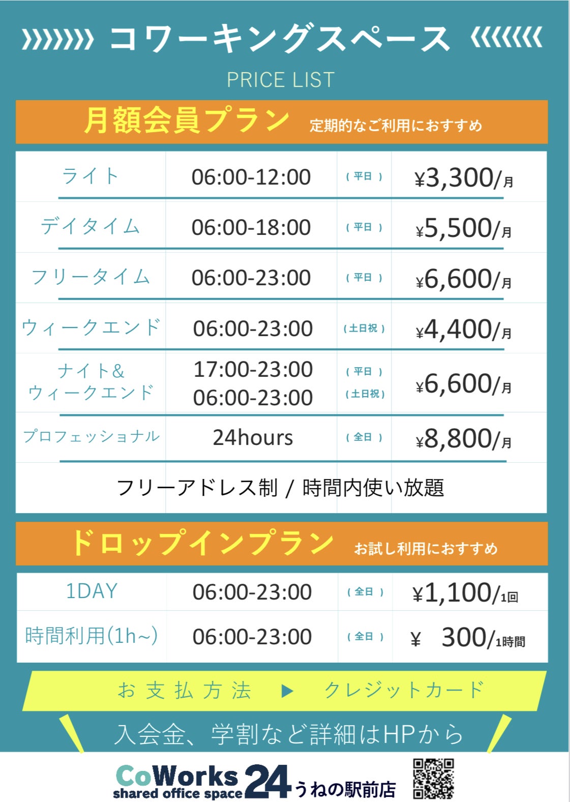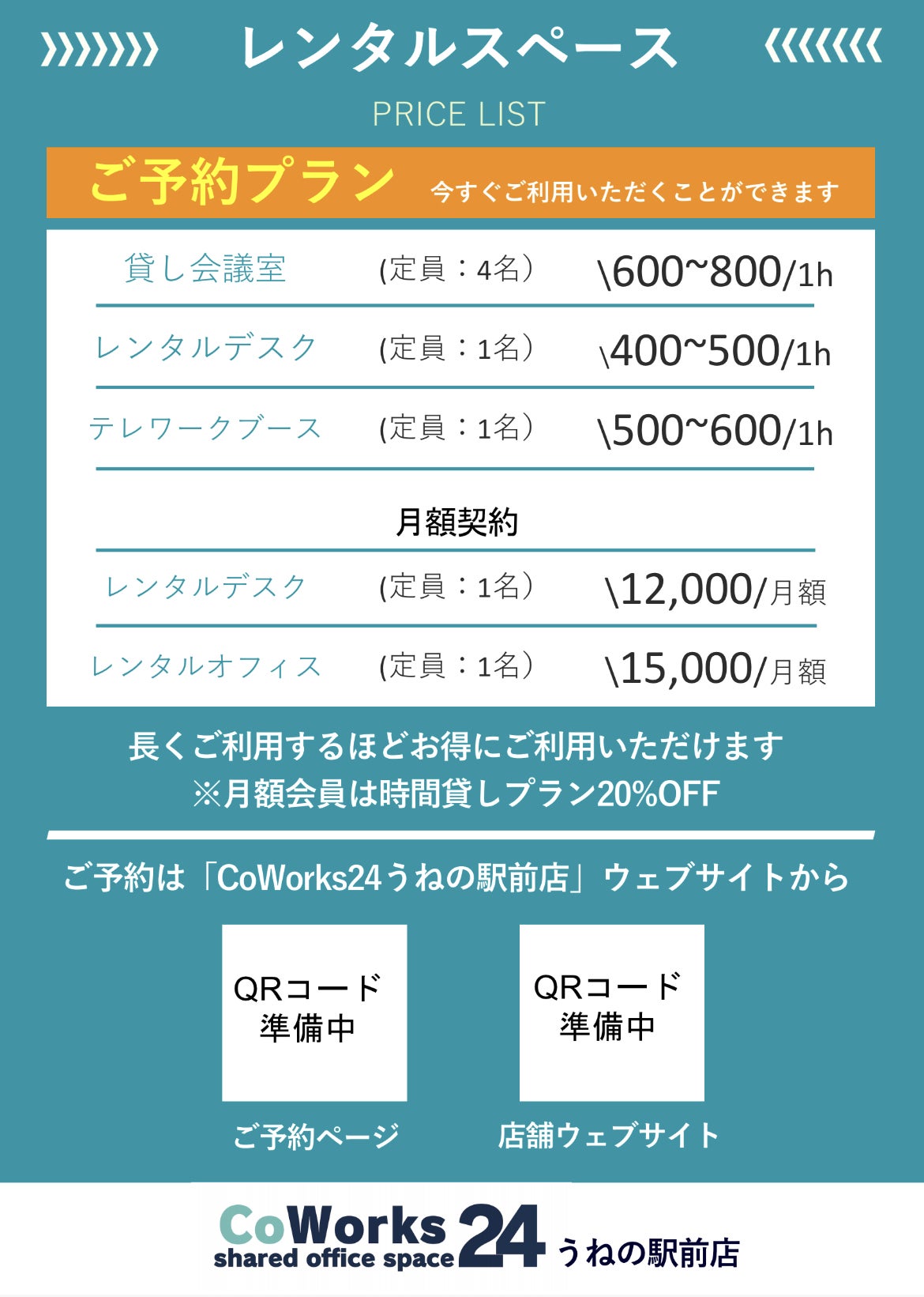 店名はCoWorks24(コワークストゥエンティフォー)うねの駅前店です。