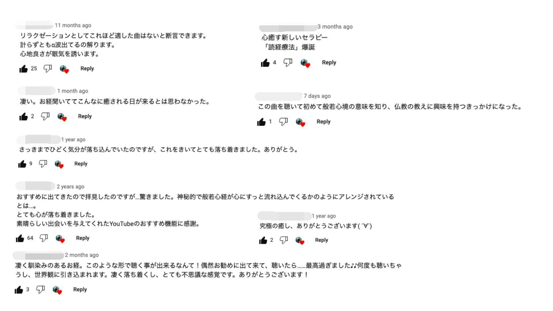 (「般若心経ビートボックスRemix」に寄せられたコメントの一部抜粋)