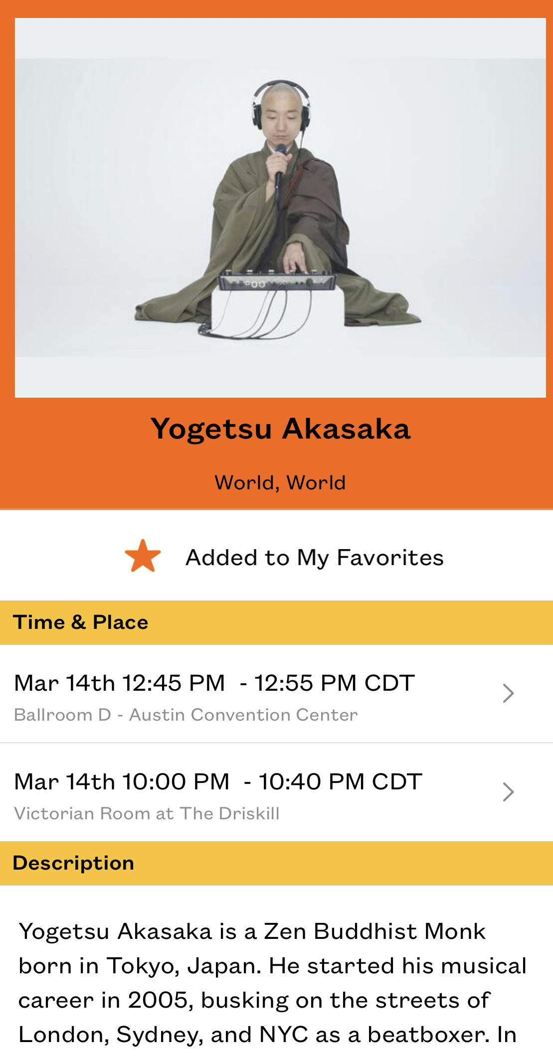 現地時間で12:45-12:55の10分間という短い時間ですが、これは凄いことです!SXSW Music Festivalの副代表、James Minor氏より直接のオファーをいただきました。(普通はあり得ないことです)