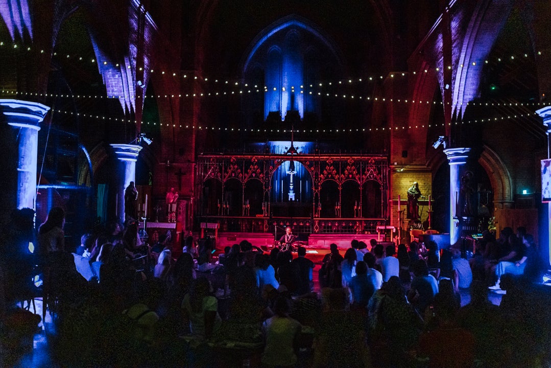 (ロンドン市内にある歴史ある教会にて。YouTubeチャンネル登録者100万人を超える音楽イベント"Sofar Sounds"に出演)