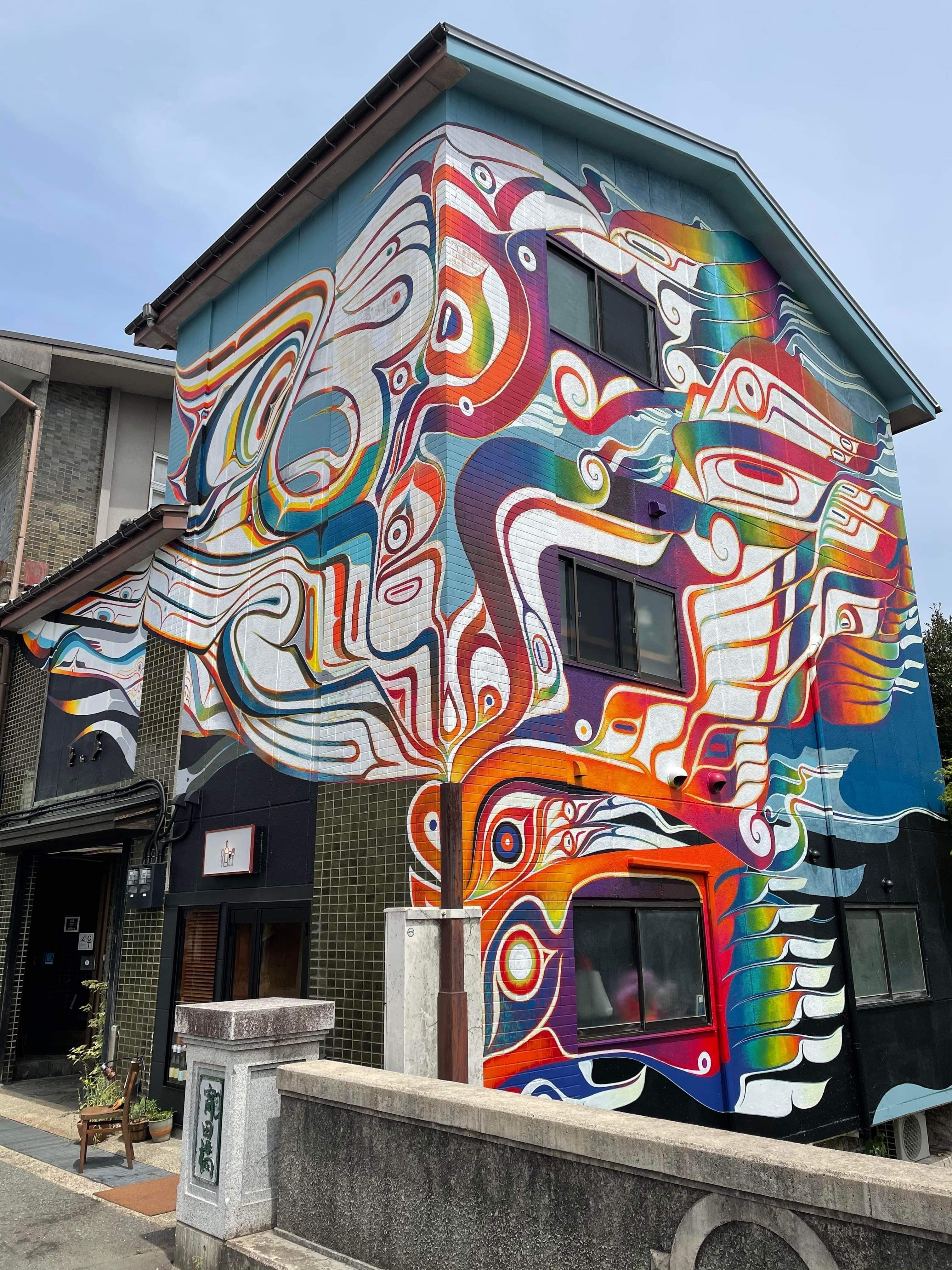 (近代和風建築物を改装した「とど兵」外壁にはアーティストの壁画が施されている)