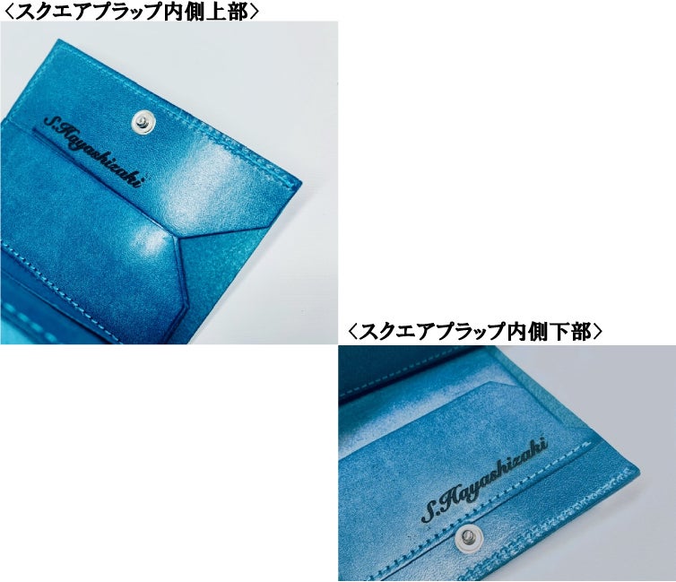 ■本体お財布に名入れは箇所は、下記(スクエアフラップ内側上部)(スクエアフラップ内側下部)2箇所に名入れや手書きイラスト・図案・メッセージの彫刻が可能。