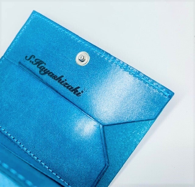 「Shiza-mini2」2色使いのコンビネーションタイプです。ワックスそのままの完成品1個(ミニ財布フラップ裏側の上下2箇所に約40文字のメッセージや名入れ・手書きイラストや図案などレーザー彫刻が標準仕様)書体は、4種類から1つをお選びください。使用する皮革は6色から2色をご指定下さい。 一般小売価格¥19,000(税・送料込)のところ表面ワックスの磨き手間を省いた会員様限定47%OFF ¥10,000(税・送料込)でご提供させて頂きます。