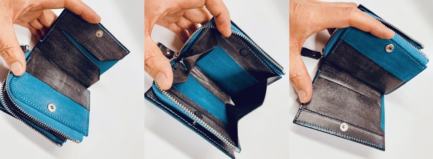 L型財布と二つ折り財布の融合ハイブリッド財布