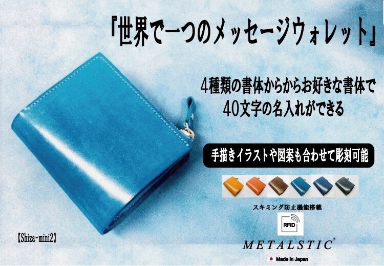 スキミング防止機能も搭載させ「L型ウォレットと二つ折り財布」の特徴を兼ね備えた複合バージョンとして誕生したのが2021年。1年半を経て【Shiza-mini2】は、更に進化『メッセージウォレット』として誕生しました。