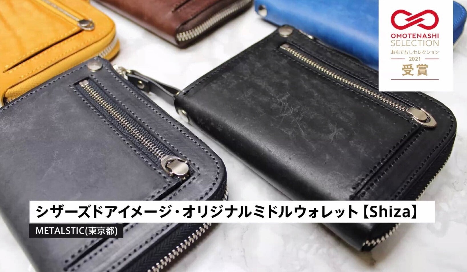 L型ウォレットをカバーする外装フラップを直線的なスクエアーカットにすることによりジェンダーレスなフォルムが特徴です。初期バージョンのデザインイメージ「デザイン」×「収納力」×「機能性」 に【Shiza-mini2】では、お好みの書体でのメッセージや名入れを行えることにより「パーソナル」要素がプラスされ『大人のメッセージ・ウォレット』として進化。