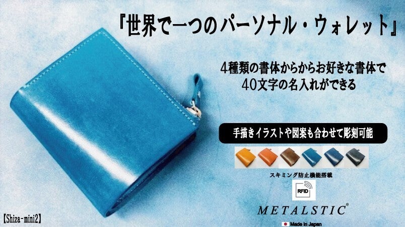 純国産牛革(ヌメ革)を使用し手書きイラストや図案・名入れメッセージが標準仕様・イラストとフォント4種類の中からお好きな書体で約40文字の名入れ彫刻の組合せも可能になります。特別なメッセージや手書きイラストであなただけのカスタマイズができる二つ折り財布とL型財布の融合ウォレット「大人のメッセージウォレット」です。