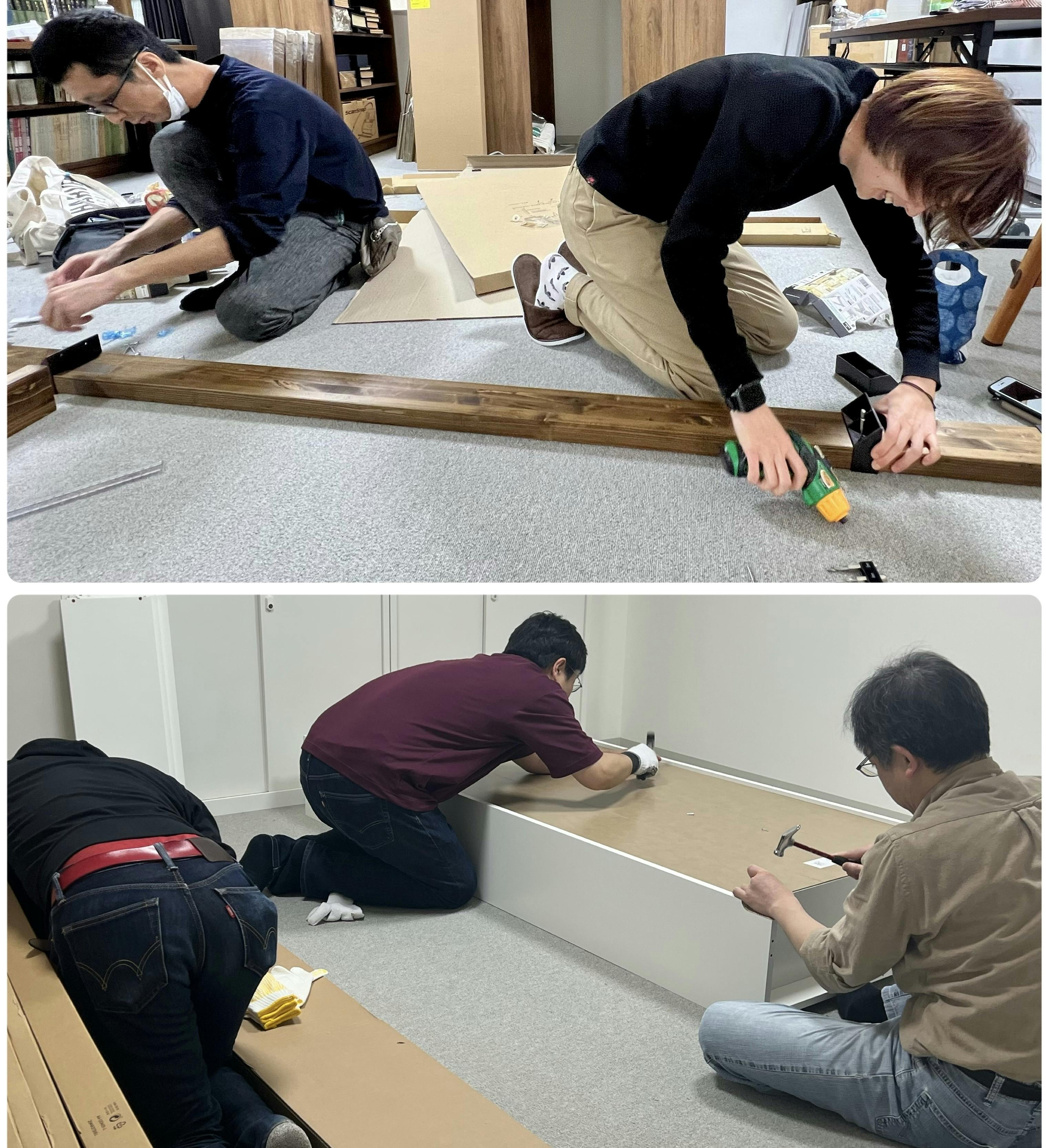 皆様からのご支援を大切に使わせていただくべく、コストパフォーマンスの高い備品を搬入していますので、作業が必要になることが多々あります。